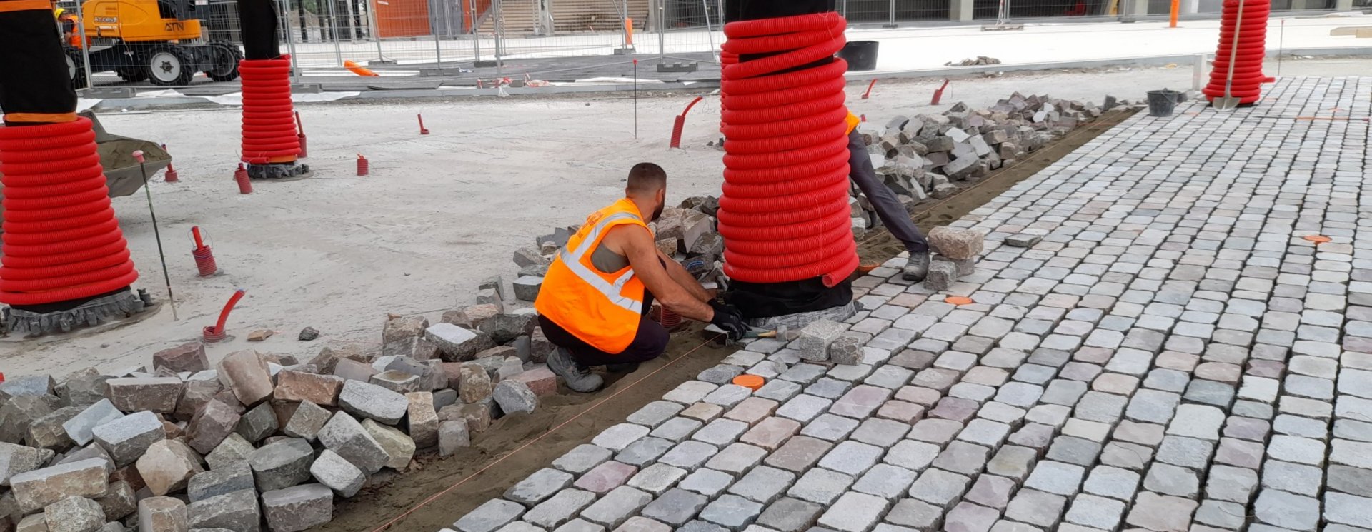 - Le réemploi des pavés bordelais sur la place des Citernes et de l'ancien abattoir sur la place Marie de Gournay,